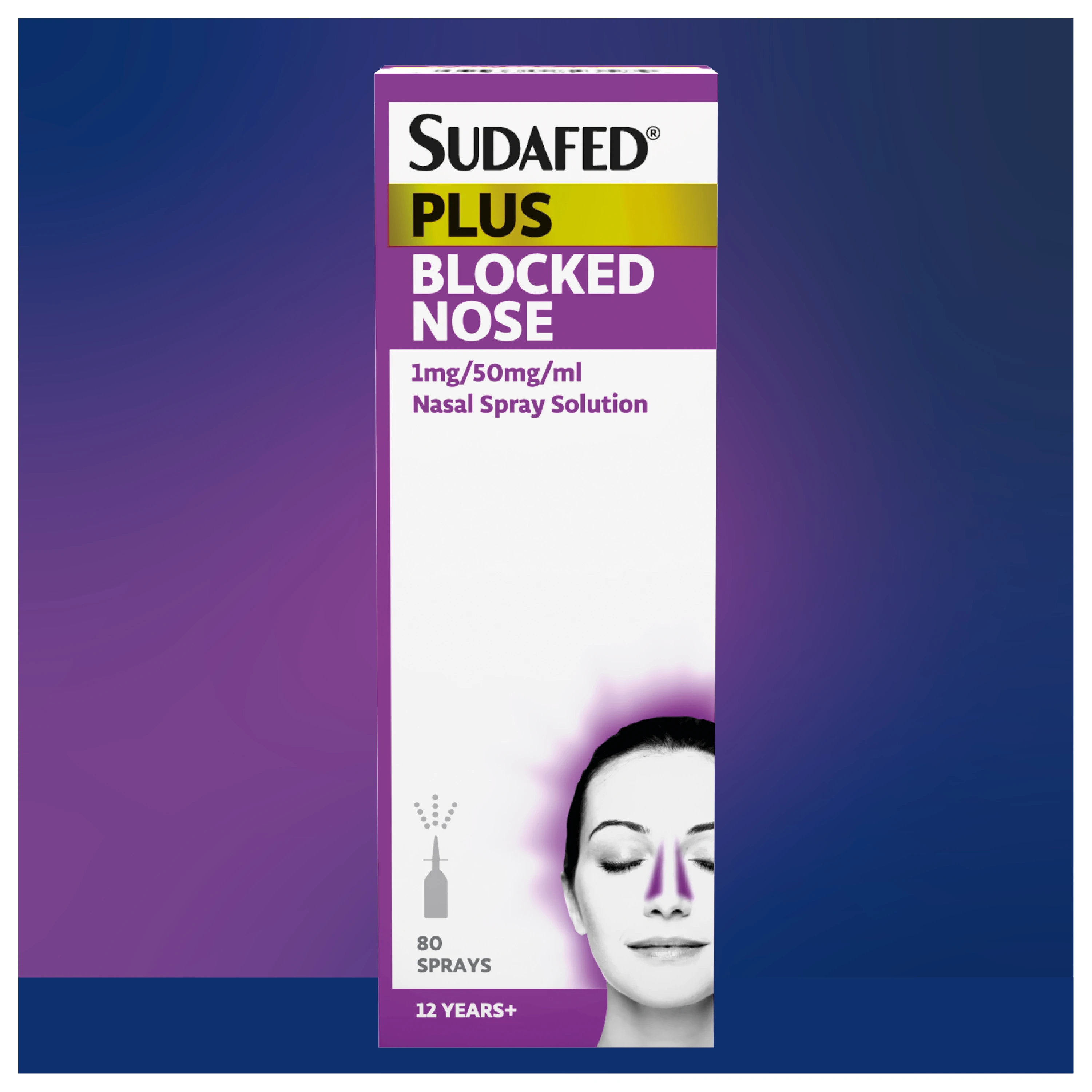 Sudafed Plus Blocked Nose Spray is used to help clear the blocked up feeling in your nose and sinuses, and helps relieve congestion caused by sinusitis, colds and hay fever. It also helps to soothe and protect your irritated nasal lining